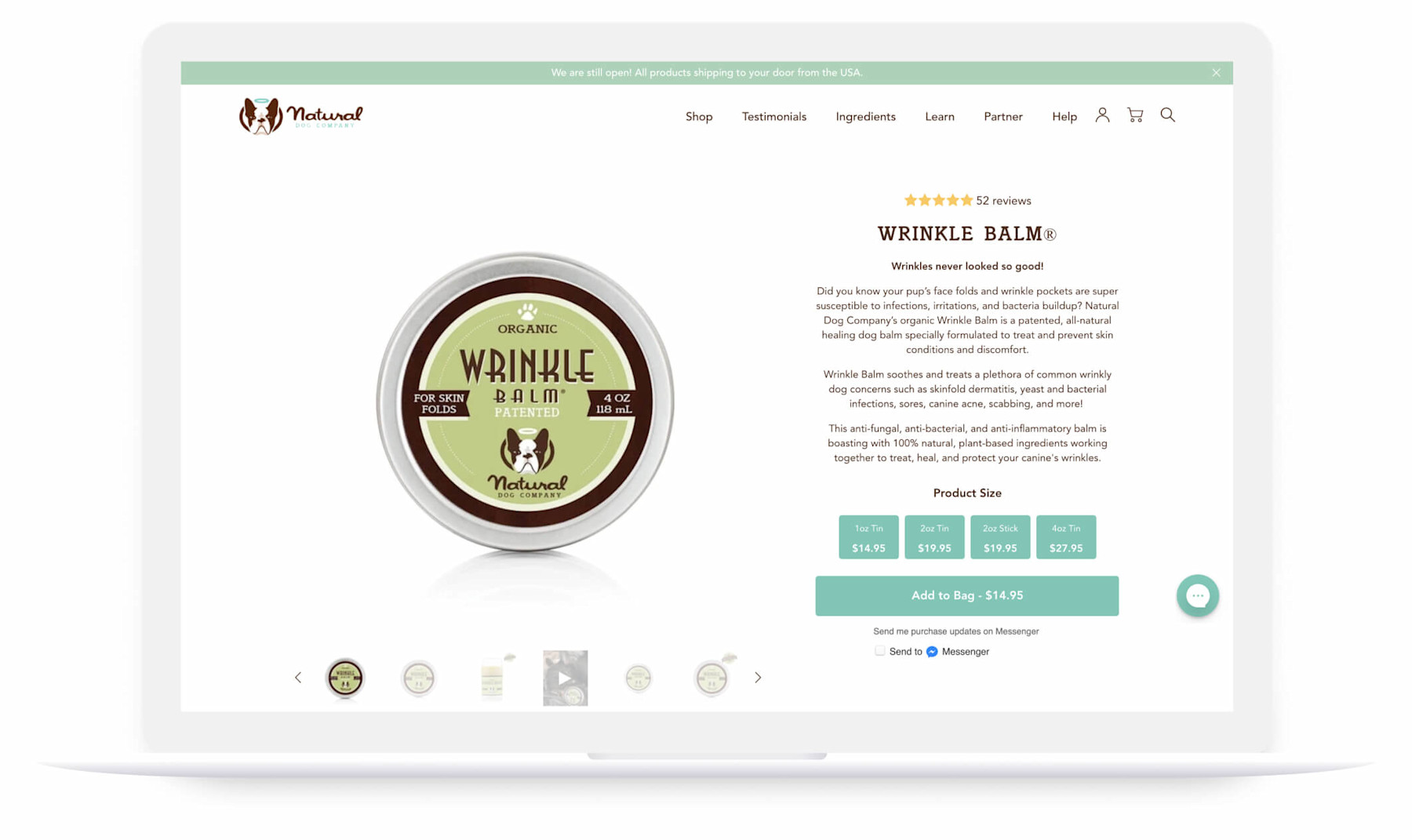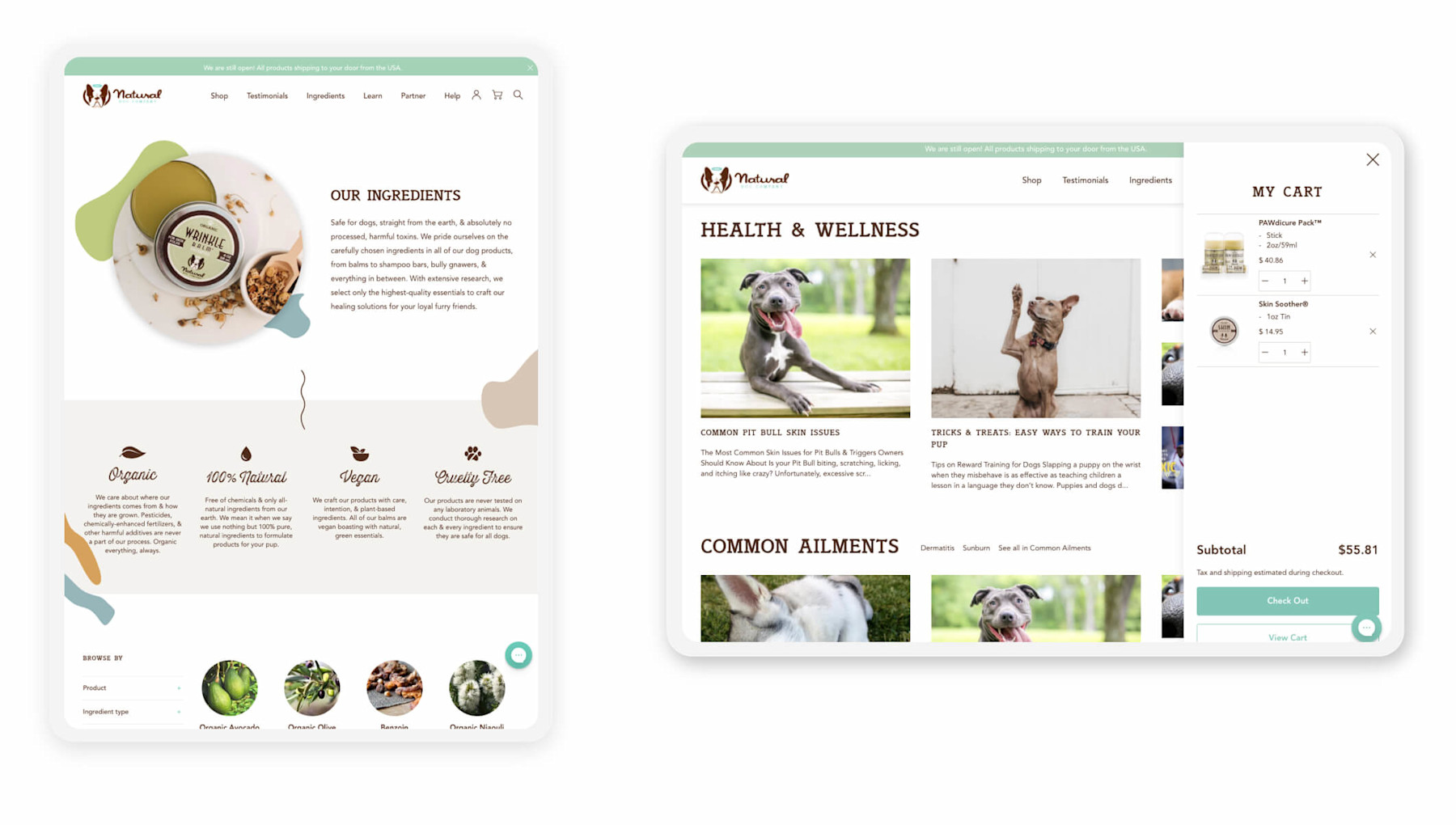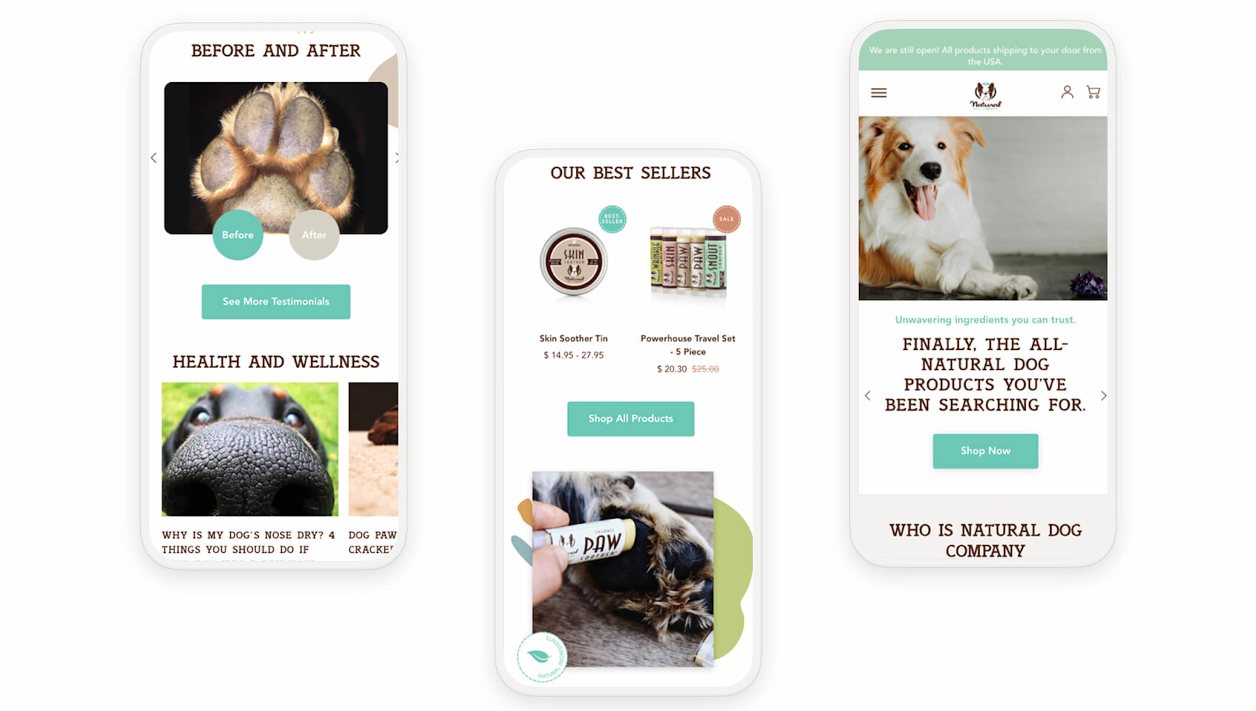 Natural Dog Company adheres to strict ethical standards, offering only organic and all-natural ingredients in their line of soothing balms, nourishing supplements and shampoo bars. Plagued by slow, outdated, buggy technology, they came to us with a vision to fully migrate their website from WordPress to Shopify and create a stellar, on-brand refresh that embodies their modern, energetic outlook, and unparalleled dedication to all four-legged friends.